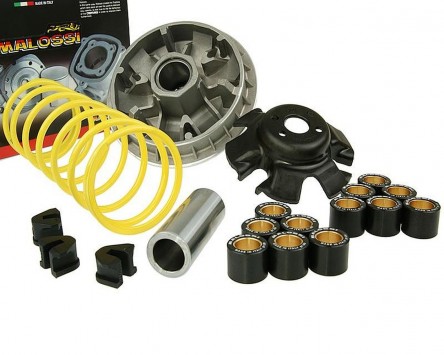 Die Multivar 2000 von MALOSSI ist eine Maxi-Variomatik, Maxi im Sinne, dass er einerseits zur Ausrüstung von Motorrollern und Quads mit großem Hubraum konzipiert wurde und andererseits die modernsten Errungenschaften der Technik und Konstruktion in sich vereint, die nie zuvor auf diese Motoren angewandt worden sind. Besserer Durchzug, etwas mehr Endgeschwindigkeit, Ruckfreies Anfahren, größter Schaltkomfort, mechanische Stille auch bei hoher Geschwindigkeit und konstante Fahrleistungen. Der Lieferumfang wurde um einen zusätzlichen Satz Variomatikgewichte in 23x18 in 17g erweitert, dadurch ist die Variomatik nun auch für 300ccm Motoren des People 300i und X-Citing 300i passend abgestimmt. Die KXR250, MXU 250, Maxxer 250, Maxxer 300 und MXU 300 Modelle verwenden weiterhin die mitgelieferten 20g Variomatikgewichte.
