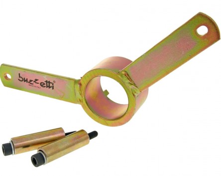 Spezialwerkzeug von BUZZETTI um die Variomatik zu Montage- und Demontagearbeiten zu blockieren. Kinderleichte Handhabung ermöglicht ein schnelles und fachgerechtes Arbeiten. Dieses Werkzeug eignet sich besser für Arbeiten im Antriebsbereich als der Kolbenstopper, da die Gefahr von Kolbenschäden ist hierbei ausgeschlossen ist. Geeignet für Maxi-Roller mit 400-500ccm kompatibel mit Piaggio 4-Takt Motor.