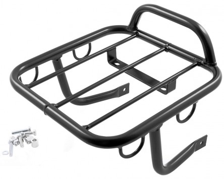 Dieser schwarz lackierte Gepäckträger für den Rieju RR wird mit dem nötigen Befestigungsmaterial geliefert.