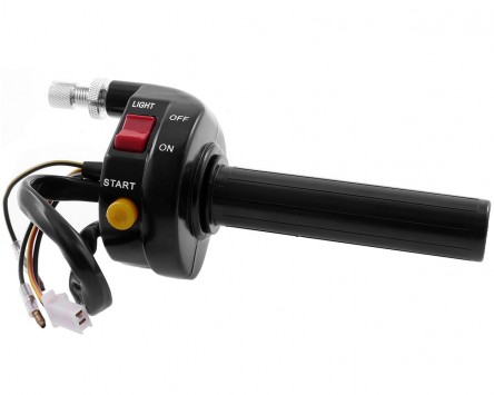 Universelle Gasgriffeinheit zur Befestigung am Lenker. Diese ist mit Schaltern für den Elektrostarter und dem Ein- und Ausschalter für das Licht versehen.