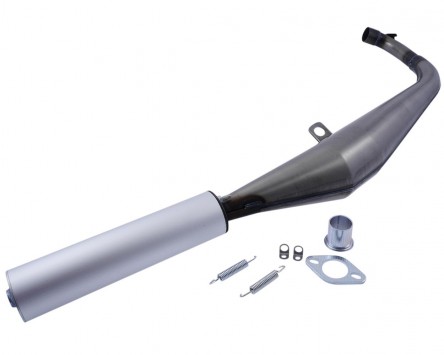Auspuffanlage vom spanischen Hersteller Proma. Bei der Entwicklung wurde ganze Arbeit geleistet um den Auspuff genau den Anforderungen und Bedürfnissen von Standard bis leicht getunten Motoren anzupassen. Dabei spielt es keine Rolle ob man den Auspuff auf einen Standard oder Tuning Zylinder fährt, in beiden Fällen erhält man ein deutliches Plus an Leistung und Sound gegenüber der originalen Auspuffanlage.