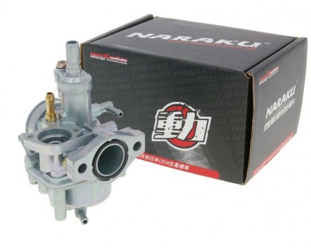 Dieser 17,5mm Vergaser von NARAKU ist funktionell identisch zum Dellorto 17,5mm Vergaser, jedoch zum deutlich besseren Preis- / Leistungsverhältnis. Der Vergaser eignet sich optimal für originale und leicht getunte Motoren. Er ist deutlich besser abzustimmen als der originale 12mm bzw. 14mm Vergaser, welcher in den europäischen Ausführungen der Roller mit E2 Abgasnorm zur Verwendung kommt. Im nichteuropäischen Ausland werden die Roller ab Werk mit einem Vergaser mit Durchmesser von 17,5mm ausgeliefert und haben dadurch eine bessere Motorleistung. Der Vergaser ist für den originalen E-Choke vorbereitet, es kann jedoch auch der manuelle Chokehebel mit Umrüstkit von Dellorto montiert werden. Der originale Luftfilterkasten kann weiter verwendet werden.