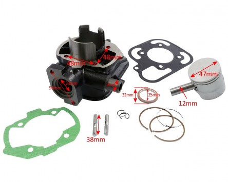 Das Kit wird mit allen benötigen Kleinteilen wie Dichtsatz, Kolbenringe, Kolbenclips etc. ausgeliefert. Das Zylinderkit wird ohne Zylinderkopf ausgeliefert, da der Originale weiter verwendet werden kann.