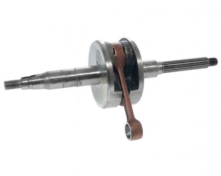 Preiswerte Ersatzkurbelwelle mit 10mm Kolbenbolzen, passend für liegende Minarelli Motoren AC und LC Motoren, wie sie zum Beispiel bei einer Yamaha Aerox, MBK Nitro und bei verschiedenen Aprilia SR50 Modellen verbaut ist. Die Kurbelwelle entspricht in den Dimensionen und Funktionen dem Originalteil und eignet sich daher perfekt als Originalersatz. Wir empfehlen bei jeder Montage ein neues Kolbenbolzenlager, neue Kurbelwellenlager und Wellendichtringe zu verwenden.