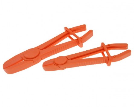 BUZZETTI Abklemmzange für Öl- und Benzinschläuche. Mit dieser Zange kann das Auslaufen von Öl, Benzin oder Kühlwasser bei Montagearbeiten an Schlauchverbindungen relativ einfach verhindert werden. Die Zange ist so konstruiert, dass der Schlauch einfach abgeklemmt wird und durch einen Schnellverschluss dauerhaft abdichtet. Dabei wird der Schlauch nicht beschädigt. Lässtige Undichtigkeiten beim Arbeiten sind somit Schnee von gestern.