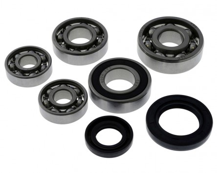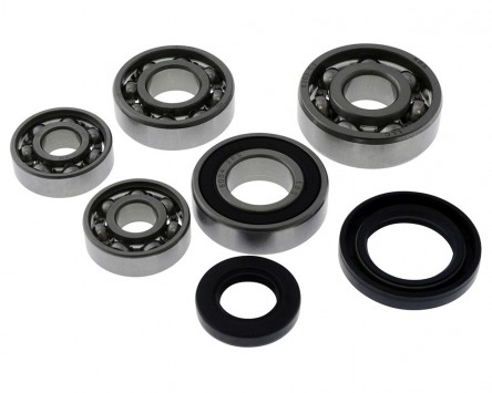 Enthalten ist das Kugellager für den Getriebeeingang, welches meist im Getriebedeckel sitzt und die Kugellager, welche die einzelnen Getriebewellen lagern. Dazu kommt das Radlager, welches durch die beidseitige Gummidichtung gegen Verschmutzungen geschützt ist. Im Set sind außerdem die Wellendichtringe für den Getriebeeingang (Getriebedeckel) und Getriebeausgang (Radwelle) enthalten.