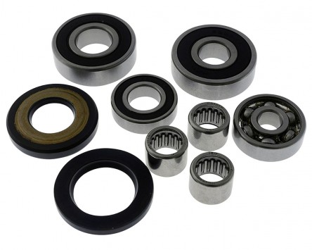Enthalten ist das Kugellager für den Getriebeeingang, welches meist im Getriebedeckel sitzt und die Kugellager, welche die einzelnen Getriebewellen lagern. Dazu kommt das Radlager, welches durch die beidseitige Gummidichtung gegen Verschmutzungen geschützt ist. Im Set sind außerdem die Wellendichtring für den Getriebeeingang (Getriebedeckel) und Getriebeausgang (Radwelle) enthalten.