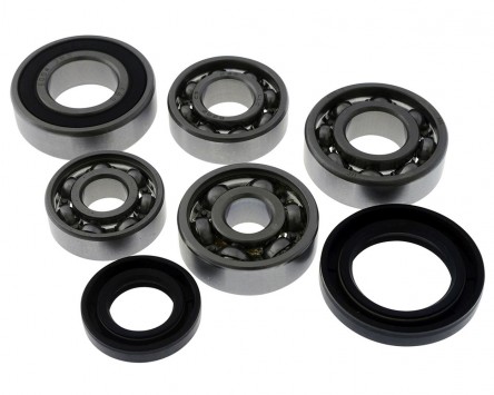 Enthalten ist das Kugellager für den Getriebeeingang, welches meist im Getriebedeckel sitzt und die Kugellager, welche die einzelnen Getriebewellen lagern. Dazu kommt das Radlager, welches durch die beidseitige Gummidichtung gegen Verschmutzungen geschützt ist. Im Set sind außerdem die Wellendichtringe für den Getriebeeingang (Getriebedeckel) und Getriebeausgang (Radwelle) enthalten.