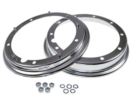 Hochwertige Ersatzfelge von RMS in Chrom, passend für viele verschiedene Vespa Classic Modelle mit 10 Zoll Bereifung. Die RMS Felge ist wie die originale Felge geteilt und kann daher ganz einfach gegen eine in die Jahre gekommene oder defekte Felge ausgetauscht werden. Auf der 10 Zoll Felge können Reifen mit der Größe 3.00-10 und 3.50-10 in Kombination mit einem 10 Zoll Schlauch montiert werden.