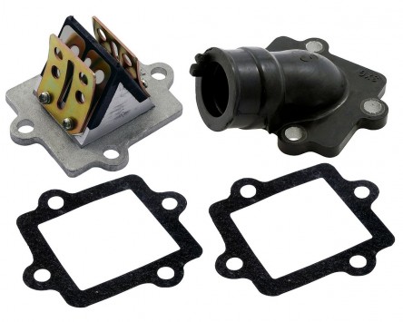 Komplettes Einlassset für Minarelli und CPI Motoren, bestehend aus einem Ansaugstutzen, Membranblock und passenden Dichtungen.