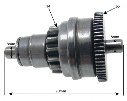 Der Anlasserfreilauf dient der Sicherung des Motors. Dieser stellt sicher, dass nichts beschädigt wird, wenn die Motordrehzahl die Drehzahl des Anlassers übersteigt.