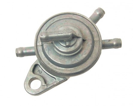 Benzinhahn mit 4 Anschlüssen für diverse 4Takt Fahrzeuge. Der Benzinhahn sitz an der Unterseite des Tanks und wird mit Benzin- und Unterdruckschlauch verbunden.
