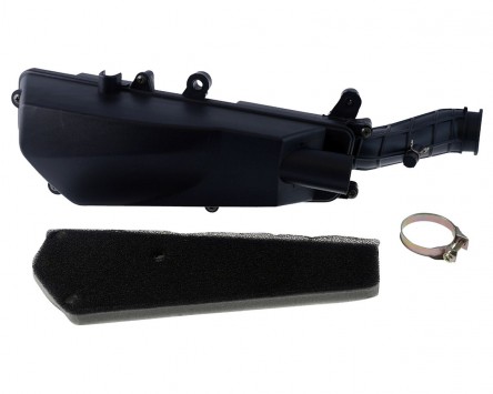 Der komplette Luftfilterkasten inkl. Luftfiltereinsatz und Schlauchschelle zur Befestigung am Vergaser. Der Luftfilter entspricht in den Abmessungen zu 100% den Originalmaßen. Diese Version ist geeignet für alle chinesischen Fahrzeuge mit 10 Zoll Bereifung am Hinterrad und dem klassischen chinesischen 4-Taktmotor.