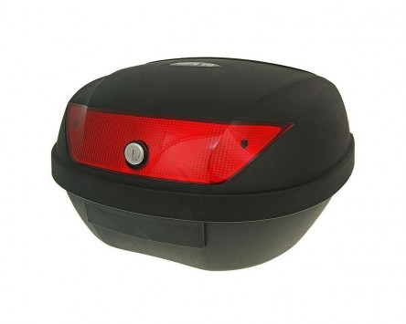 Universeller Top Case Maxi-Koffer. Mit seinen 48 Liter Fassungsvermögen bietet er ausreichend Stauraum und Platz für 2 Integralhelme. Durchgefärbter schwarzer Kunststoff. Hintere Reflektoren geben zusätzliche Sicherheit bei Nacht. Abschließbar.