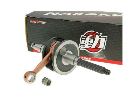 Preiswerte Ersatzkurbelwelle in sehr guter Qualität von NARAKU für liegende Minarelli Motoren. Die Kurbelwelle entspricht der Baumform, Qualität und Dimensionen der originalen Kurbelwelle. Die Lieferung erfolgt inklusive Kolbenbolzenlager.