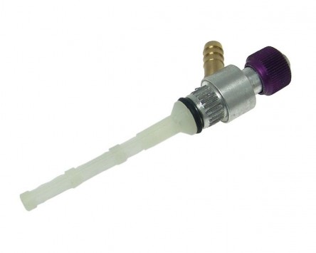 Manueller Benzinhahn aus dem Hause Malossi. Speziell für Rennzwecke angefertigter Hahn komplett aus Aluminium mit violett eloxiertem Öffnungs-/ und Schließknopf.