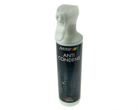Dieses Spray verhindert die Ansammlung von Kondenswasser und Feuchtichkeit an Helmen, Spiegeln, Scheiben, wodurch diese nicht beschlagen können.