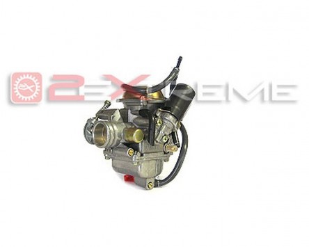 Unterdruckgesteuerter 24mm Tuning Vergaser aus dem Hause 2EXTREME. Der Durchlass von 24mm erlaubt einen deutlich größeren Gasdurchsatz und setzt in Verbindung mit einem größeren Ansaugstutzen mehr Leistung frei. Aufgrund der Größe sollte dieser Vergaser erst ab den 85ccm [51mm] Zylindern mit entsprechend großen Zylinderköpfen eingesetzt werden. Der Vergaser ist mit elektrischen Choke ausgerüstet. Der Vergaser ist Grundabgestimmt für 51mm Zylinderkits. Der original Gasbowdenzug kann weiter verwendet werden, es muss die Bowdenzughülle an der Vergaserseite etwas eingekürzt werden.
