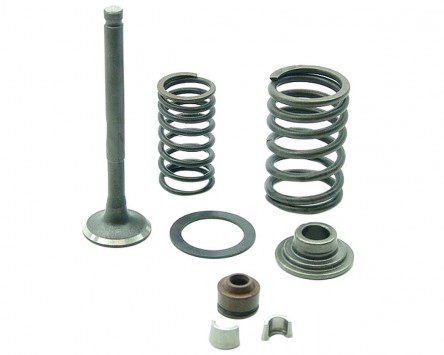 Um auf der sicheren Seite zu sein, bieten wir ihnen hier das Auslassventil im kompletten Set an. Das Set besteht aus Ventil, Cutters, Schaftdichtung, Ring, Ventilfedern usw.
