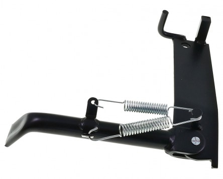 Hochwertiger Seitenständer in schwarz, passend für Yamaha Jog R und MBK Mach G 50ccm Modelle mit luftgekühltem Motor. Seitenständer sind überaus praktisch. Einfach mit dem Fuß den kleinen Ständer ausfahren und das Fahrzeug abstellen. Gerade bei Kurzstrecken in der Stadt sehr angenehm, da man das schwere Fahrzeug nicht mühsam auf den Hauptständer aufbocken muss. Durch leichtes angestoßen geht der Seitenständer anschließend automatisch in die Ausgangsposition zurück