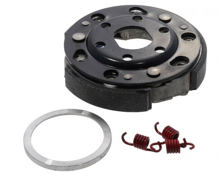 EVO RACING Kupplung 107mm für originale und getunte Motoren. Dies ist eine 3-Backenkupplung bei der man die Federvorspannung separat einstellen kann. Dadurch kann die Kupplung im Gegensatz zu den anderen Kupplungen auf dem Markt, welche nur durch wechseln der Federn sich einstellen lassen, die Vorspannung ganz genau auf die jeweiligen Anforderungen eingestellt werden. 2 verschieden harte Sätze Kupplungsfedern sind in der Lieferung enthalten. Ein weiterer großer Vorteil ist, dass die Federvorspannung mittels einer Sechskantschraube auf der Rückseite eingestellt werden kann ohne das man die Kupplung demontieren muss.