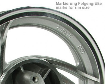 Vorderradfelge mit Scheibenbremse . Passend für alle Scooter Modelle mit 2.15x10 Felge. Die auf dem Foto abgebildete Felge wurde werksseitig in China ab Baujahr 2005 verbaut. Aber auch Fahrzeuge mit jüngeren Baujahren verfügen über diese Felgengröße. Es kann allerdings kleine Design Abweichungen je Baujahr geben.Die Felge ist einbaufertig. Zur Sicherheit kann die Bezeichnung 2,15x10 an der originalen Felge geprüft werden. Diese Bezeichnung ist am Felgenhorn bei jeder Originalfelge aufgeprägt. Siehe Bild. Zur Überprüfung muss das Rad nicht ausgebaut werden.